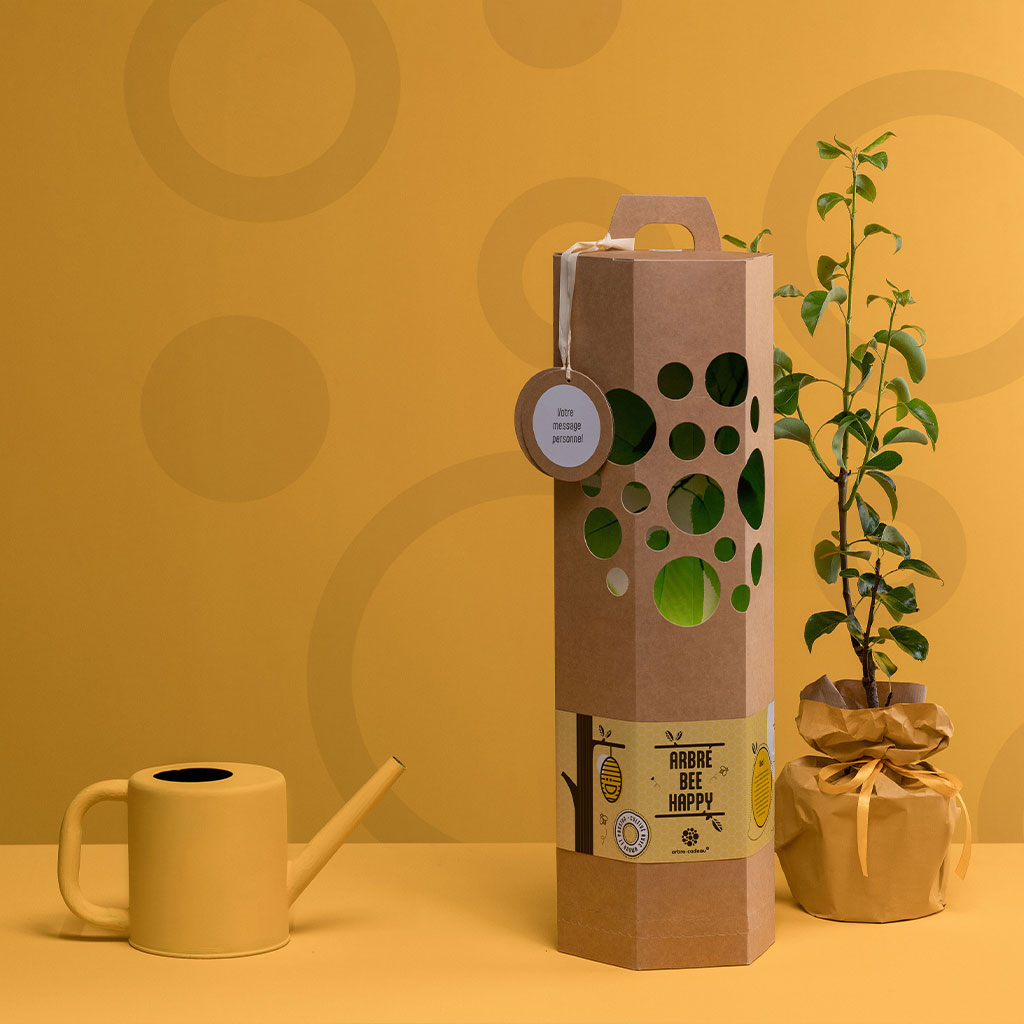 Les abeilles sont des créatures spéciales et essentielles à un environnement sain. Malheureusement, les abeilles sont menacées et cela est inquiétant pour l’avenir. En effet, sans elles, il n’y aurait pratiquement plus de fleurs, de fruits et de légumes. Les abeilles extraient leurs protéines, minéraux et vitamines du pollen, elles ont donc besoin de nectar et de pollen pour survivre. Vous pouvez aider les abeilles en offrant un arbre à planter. Nos pommiers, poiriers et noisetiers sont des arbres mellifères, très importants pour les abeilles. Offrez un arbre « Bee Happy » à planter, et donnez un coup de main aux abeilles !